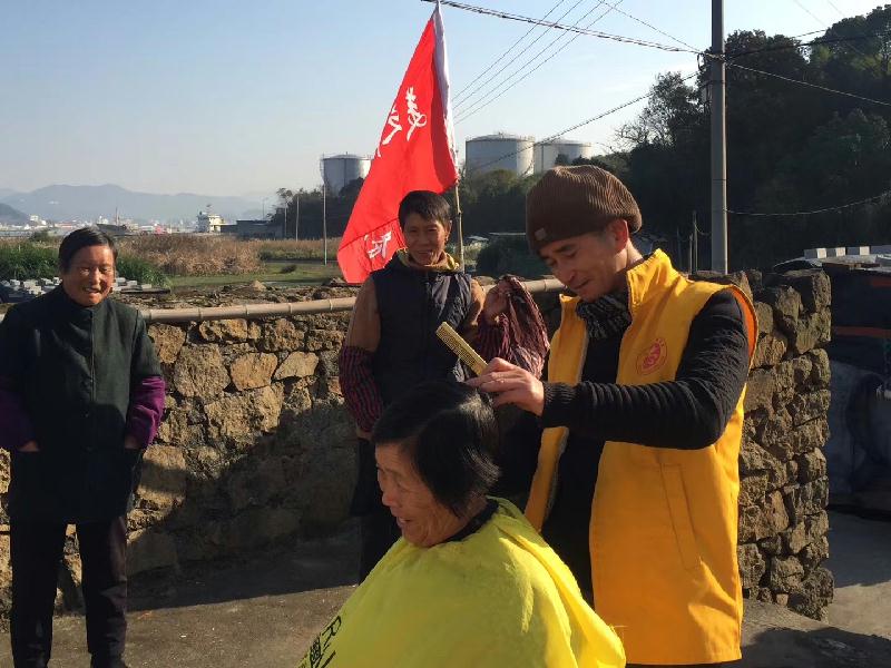 一个上午,美之声的团员们兵分三路,为岛上西岙村、东岙村、北岙村三个村落的老人理发。北岙村97岁独居老人张阿婆,行动不便,常年卧床,美之声的团员帮老人穿上衣服并抱下床,陪老人边晒太阳边理发。温暖的眼光下,张阿婆露出了久违的笑容。